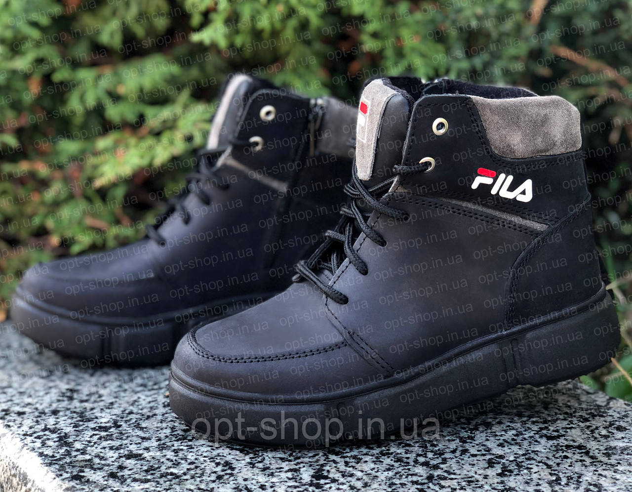 Черевики дитячі зимові шкіряні на хлопчика на хутрі від виробника (код: МС-Fila шнурок)