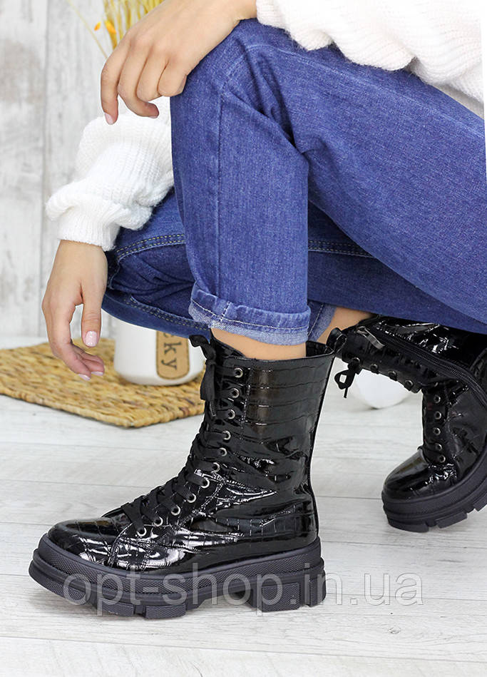 Черевики жіночі демісезонні осінні шкіряні берці чорні на шнурівці